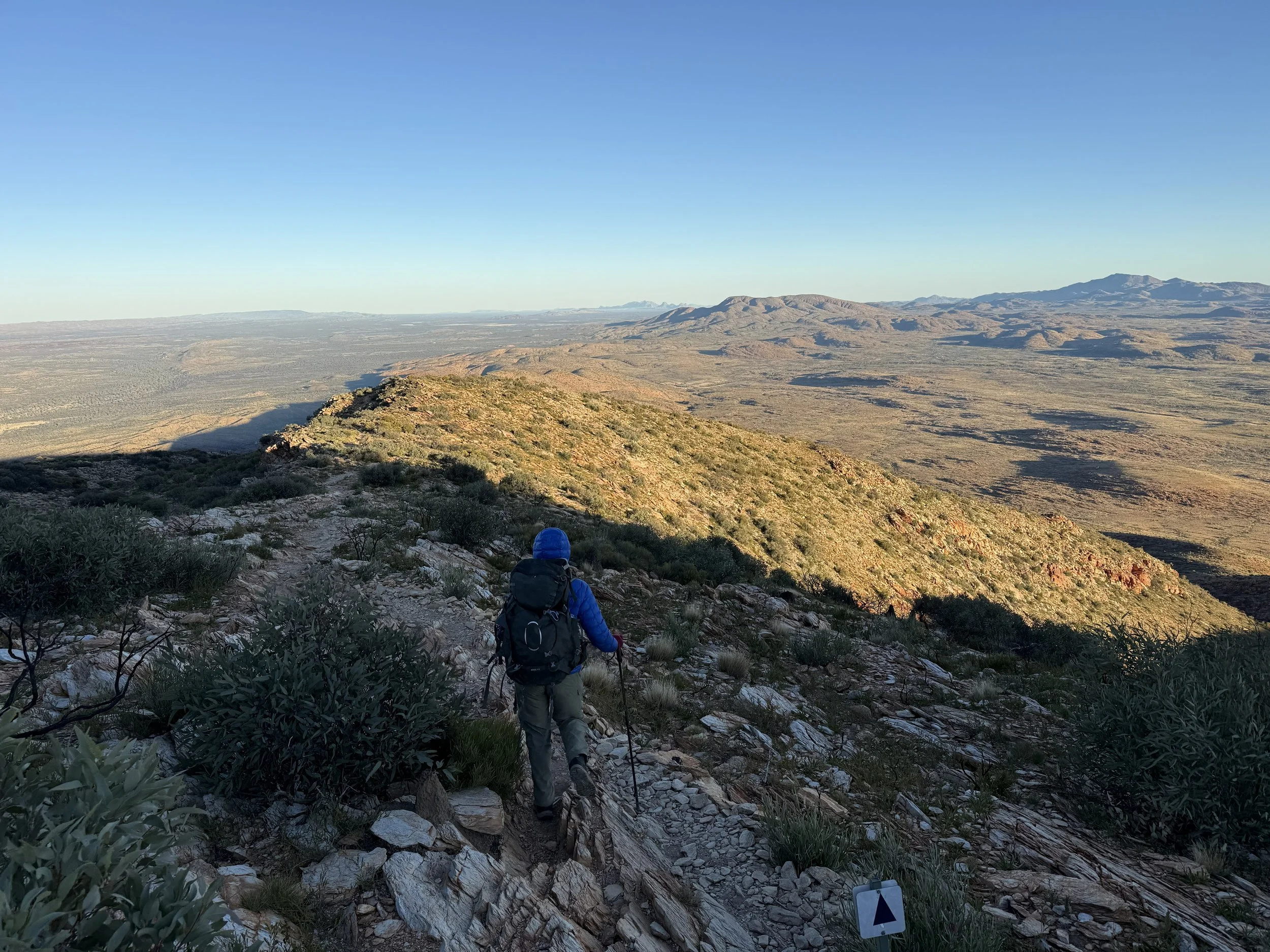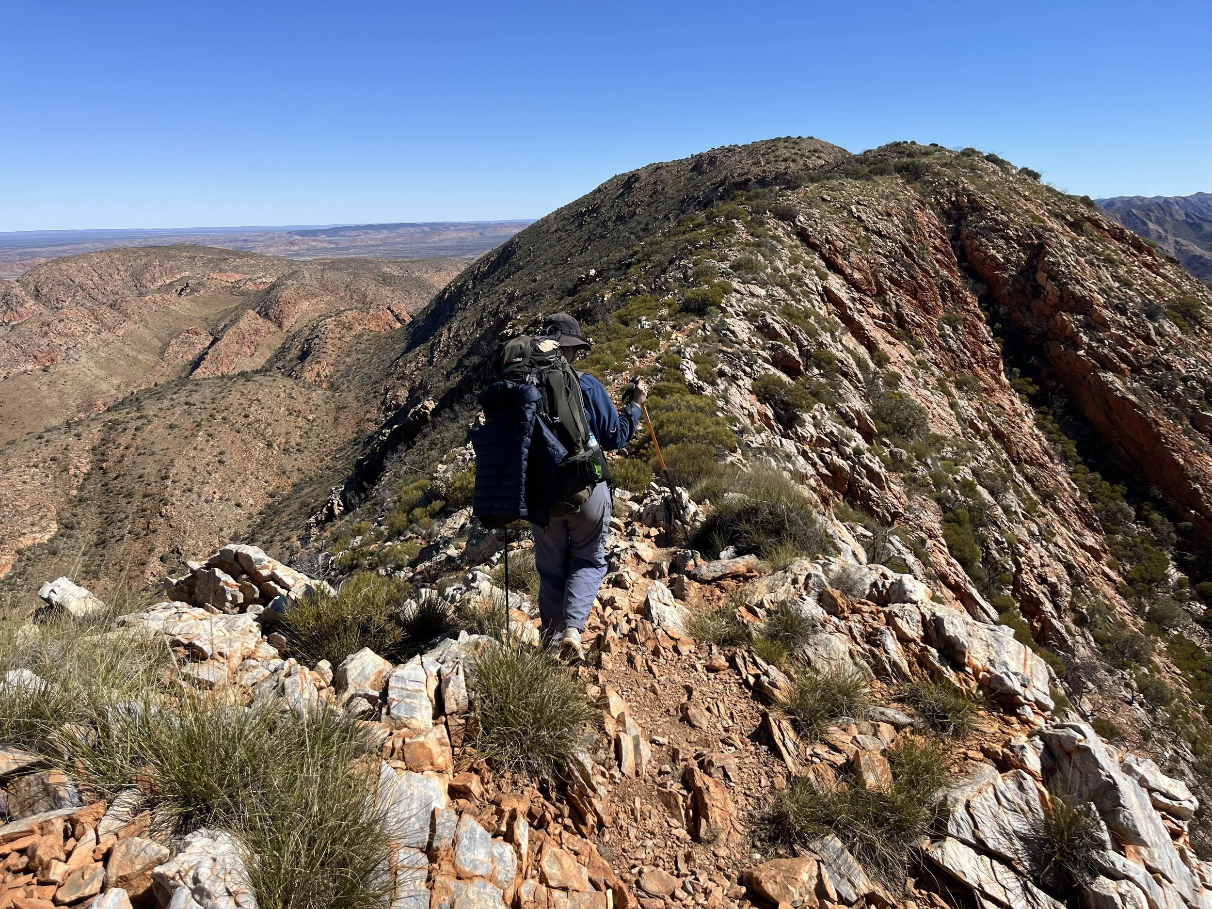 The Larapinta Highlights is a fully supported trek. You will need to carry just a day-pack with your water bottles, snacks, jacket, camera and other personal items. You should plan on carrying 3-4 litres (exact amount is dependent on the day) of water each and every day.