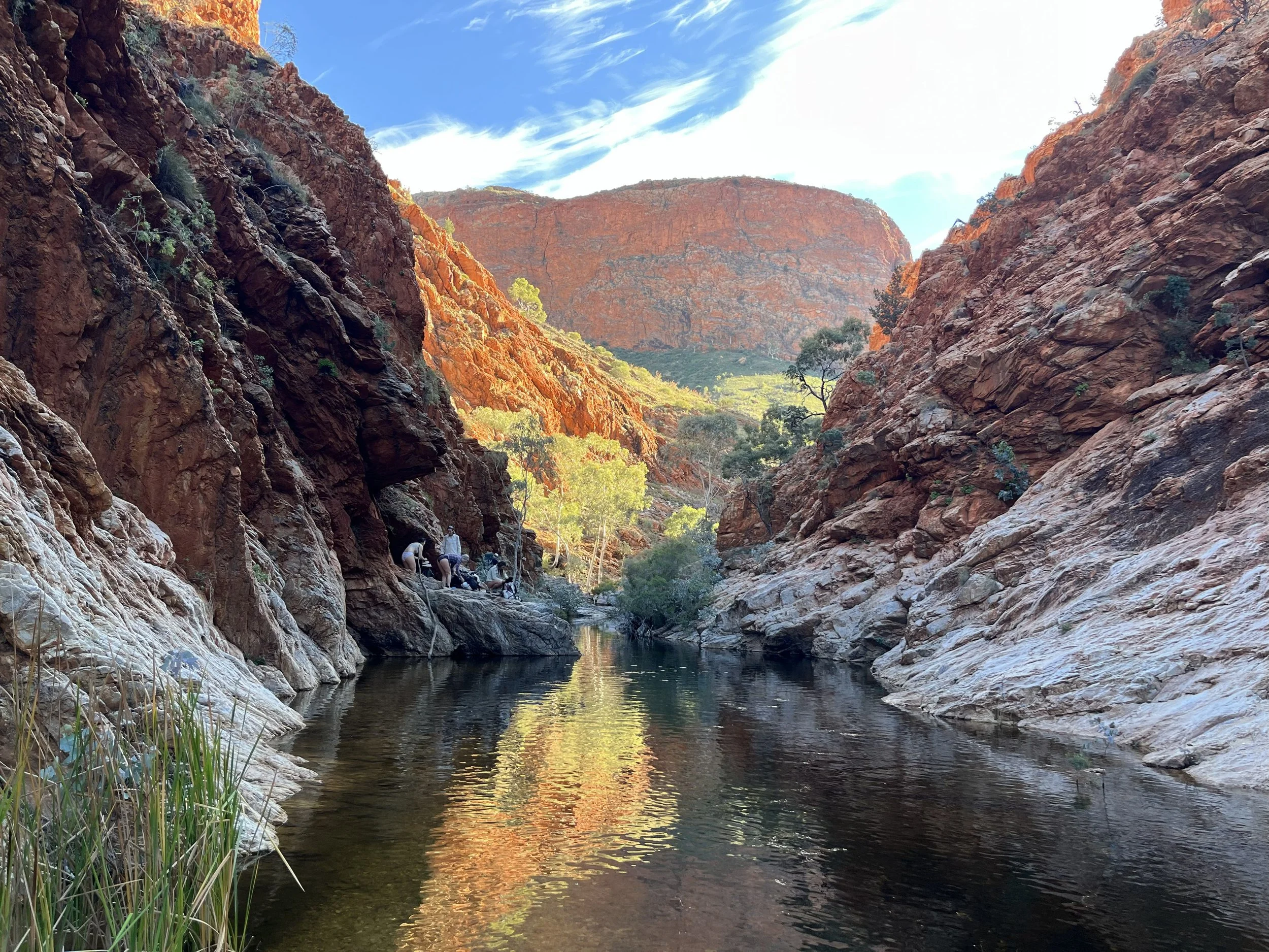 In the Centre, the four traditional seasons are more distinct, and temperatures are more extreme than in most other parts of Australia. Trekking in winter (May to August) is generally pleasant with light winds, and daytime temperatures averaging 15-25C or 60-80F. However, winter nights often plummet below freezing and there are frequent frosts; please make sure that you prepare for the cold evenings on winter treks. T he shoulder seasons of April and September tend to bring higher daytime temperatures with daytime temperatures averaging 25-35C or 75-95F. Nights are typically mild hovering around 10-15C or 50-60F. Higher daytime temperatures can occasionally occur necessitating adjustments to itineraries. This may entail a reduction in walking activities and an increase in more leisurely pursuits such as swimming. While rainfall is infrequent along the Larapinta Trail, it remains essential to be equipped for any weather scenario. The region is susceptible to unpredictable spells of hot or cold weather at random intervals. Rest assured, our facilities are well-equipped to accommodate both extremes, ensuring an enjoyable experience amidst the diverse conditions of Outback Australia. However, in light of this variability, we hope to stress to you the importance of following our suggested packing list, checking local weather updates prior to departure and packing appropriately for a more informed and enjoyable journey.